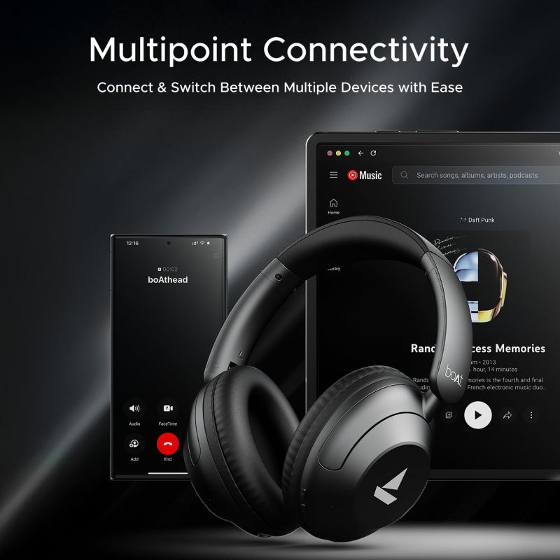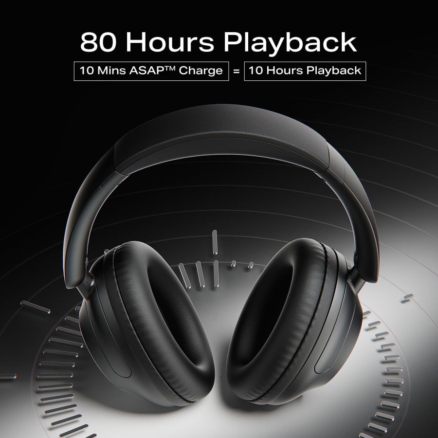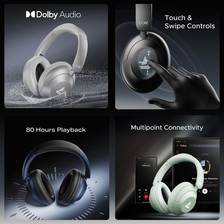 BoAt New Launch Rockerz 650 Pro, Touch/Swipe Controls, Dolby Audio, 80Hrs Battery, 2Mics ENx, Fast Charge, App Support, Dual Pair, Bluetooth Over Ear Headphones with Mic (Iris Black)