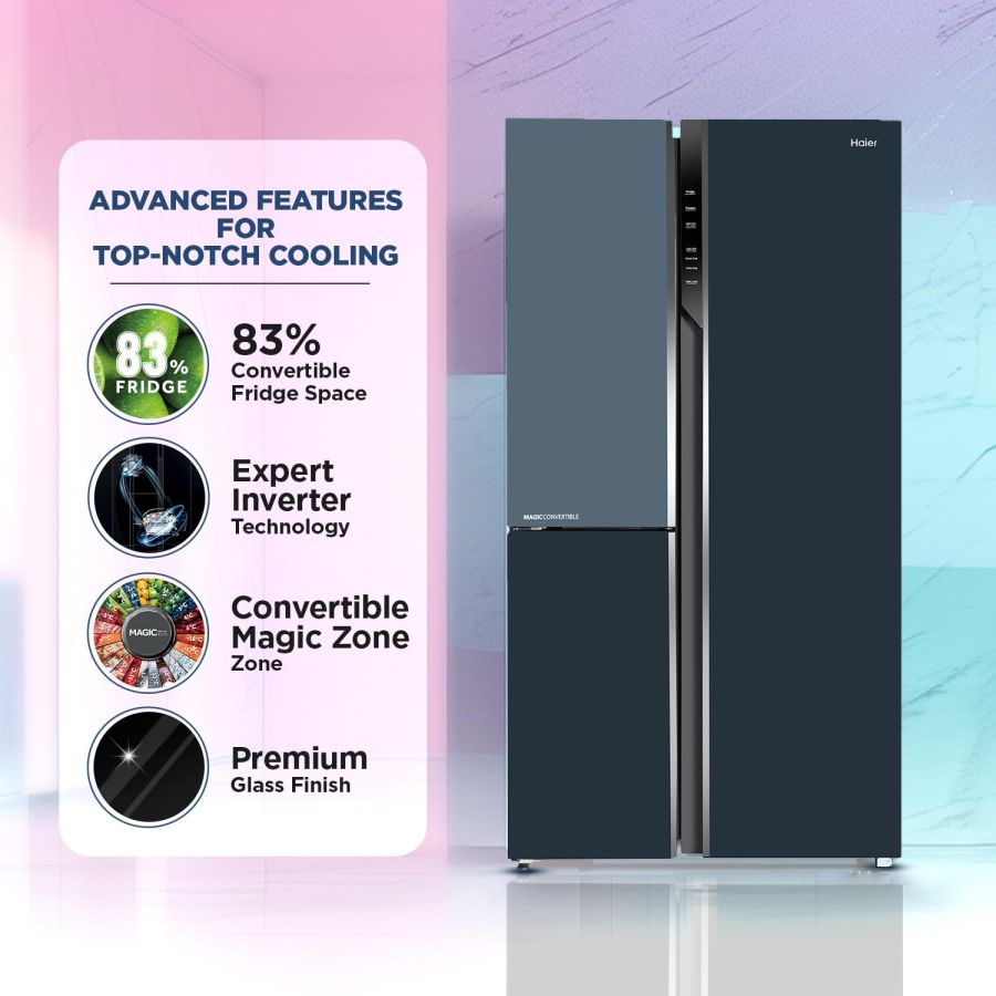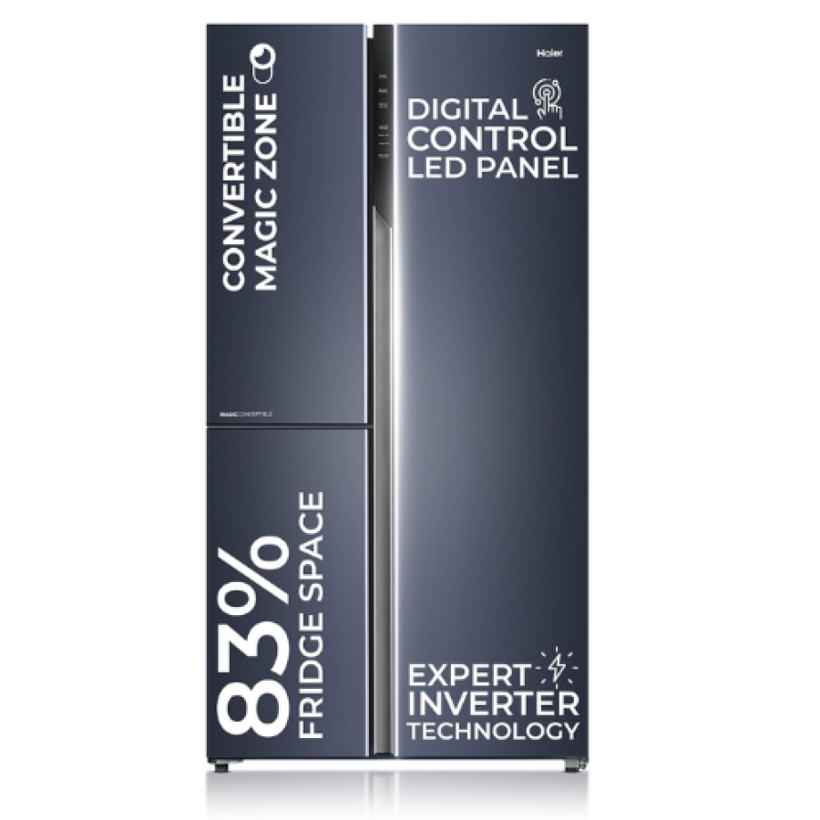 Haier 598L, 3-Star, Vogue 83% Convertible Fridge Space, Expert Inverter 3-Door Side by Side Refrigerator, (HRT-683GOG, Grey Onyx Glass)