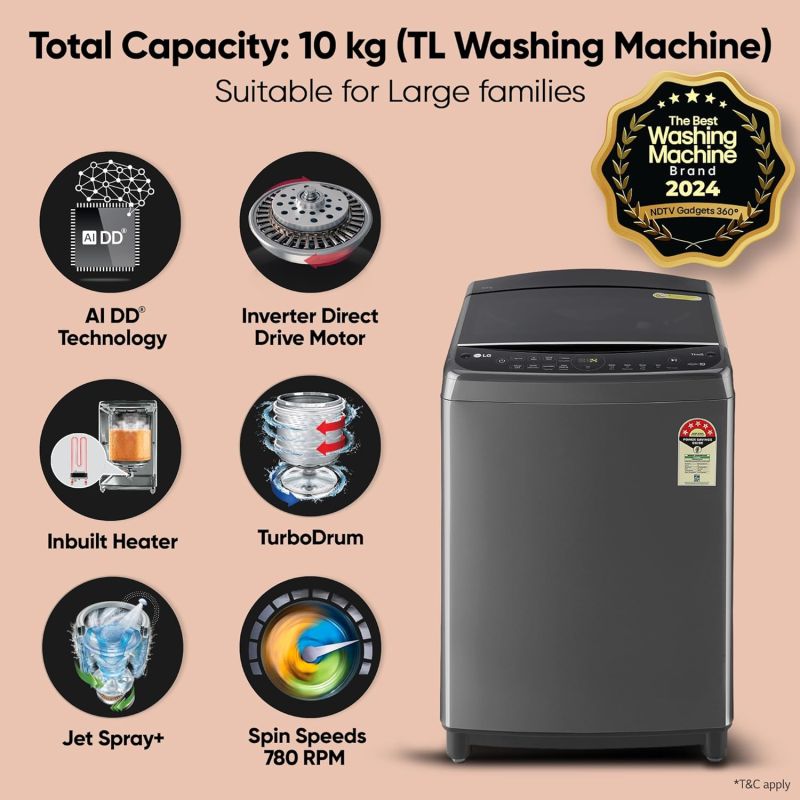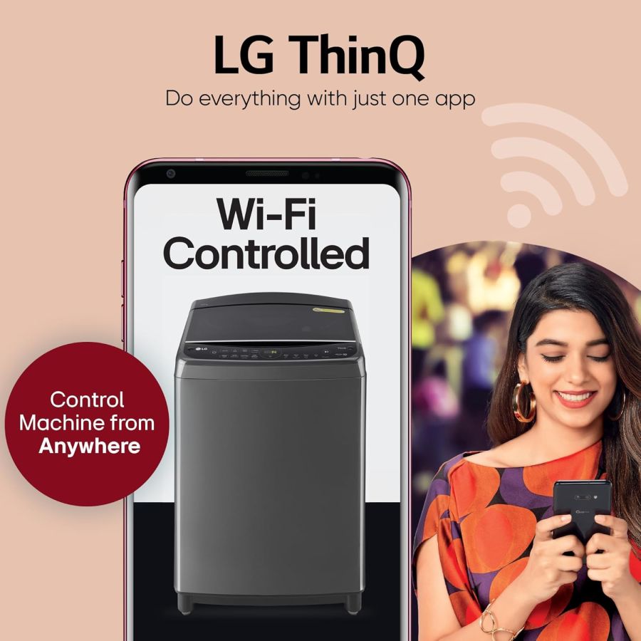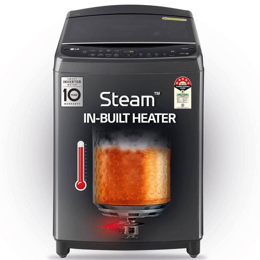 LG 10.0 Kg 5 Star AI Direct Drive Technology, ThinQ (Wi-Fi), Steam Wash for Allergy Removal Fully Automatic Top Loading Washing Machine (THD10SWM, Middle Black, More Fabric Care & Convenience)