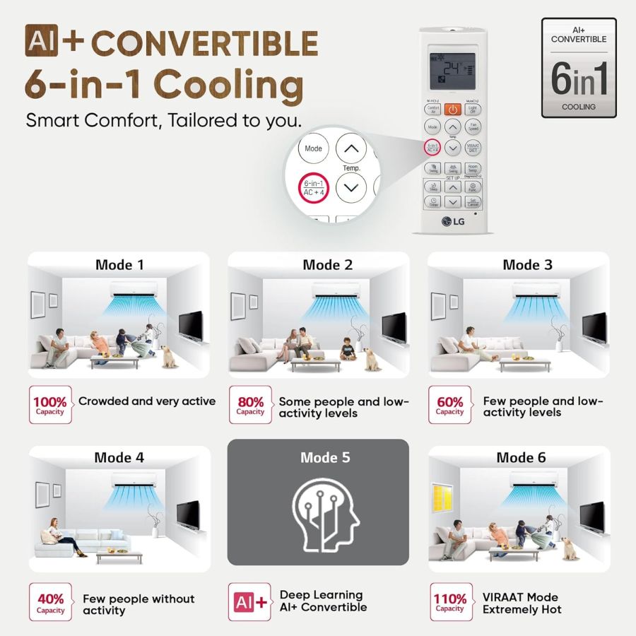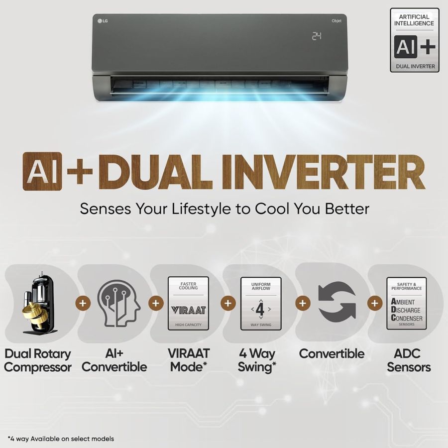 LG 1.5 Ton 5 Star, Wi-Fi, Energy Manager+, DUAL Inverter Split AC (Copper, AI+ Convertible 6-in-1, Diet Mode+, 4 Way Swing, HD Filter with Anti-Virus Protection, US-Q19MWZE, Black Mirror)