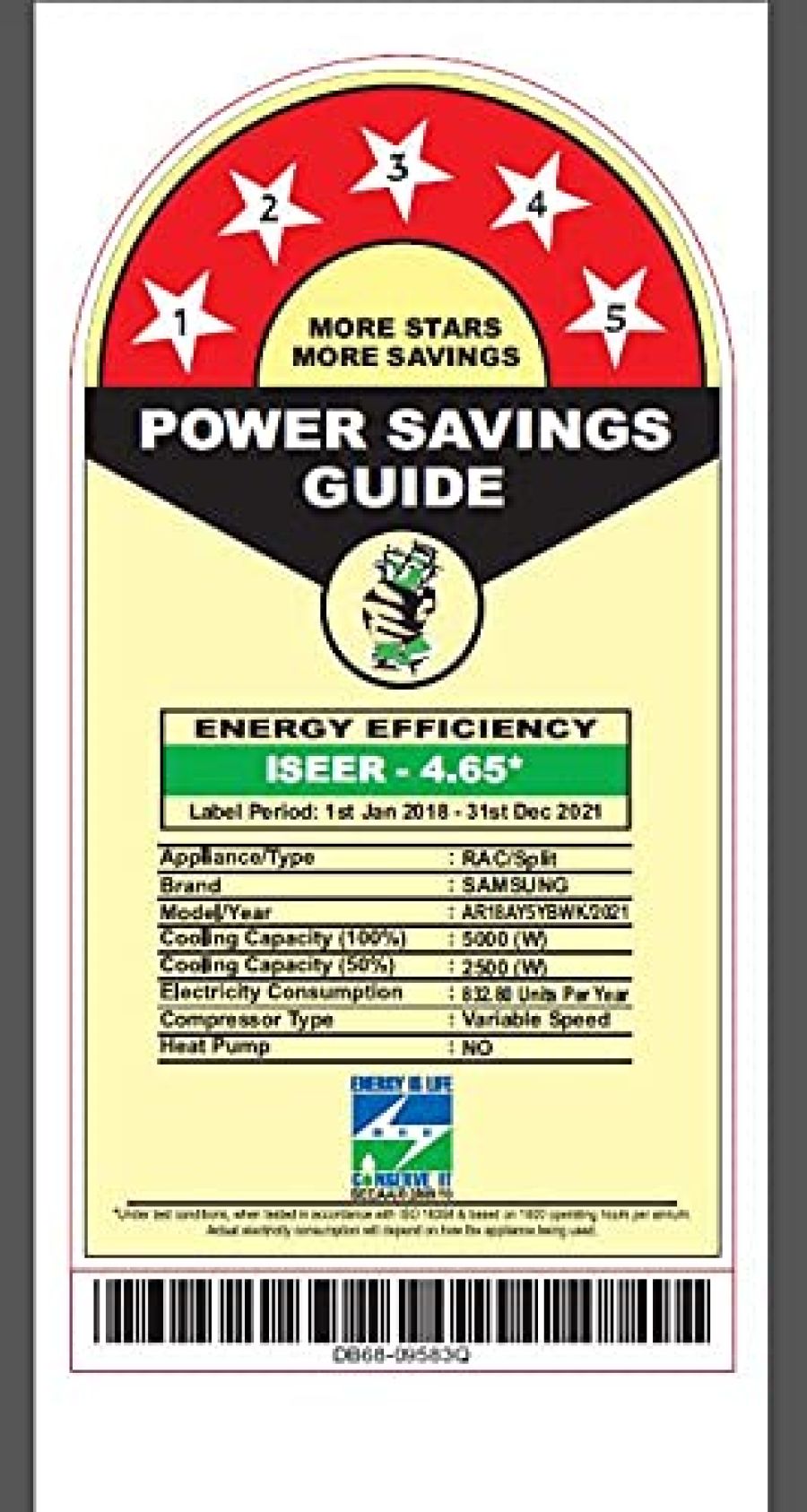 | Cooling Power | 5.8 Kilowatts |
